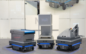 MiR100: payload up to 100Kg and towing capacity up to 300Kg.